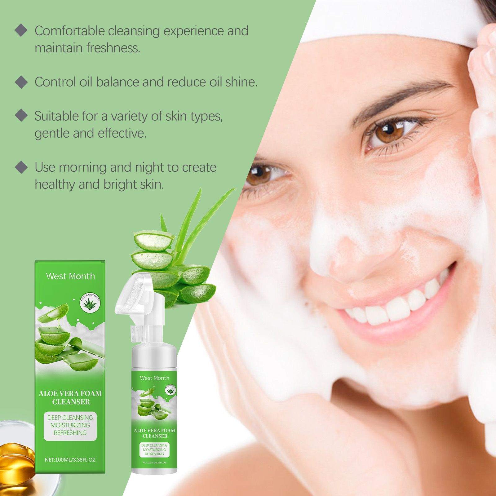 West&Month Aloe Vera Foam Cleanser Moisturizes, Moisturizes, Gently Cleanses Pores And Refreshes West&Month Aloe Vera Foam Cleanser Moisturizes, Moisturizes, Gently Cleanses Pores And Refreshes West&Month Aloe Vera Foam Cleanser Moisturizes, Moisturizes, Gently Cleanses Pores And Refreshes